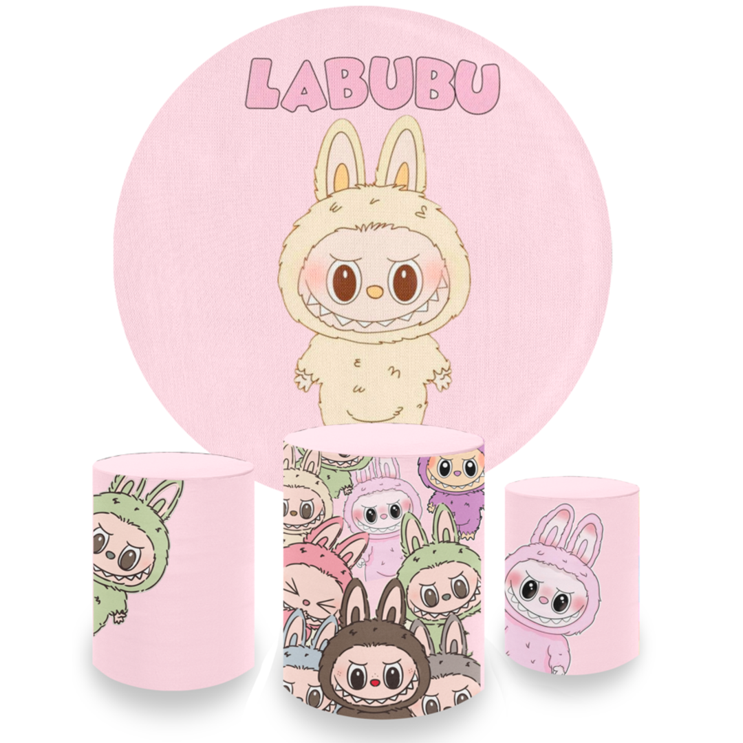 Kit Decoração Labubu Painel Redondo + 3 Capas Cilindros