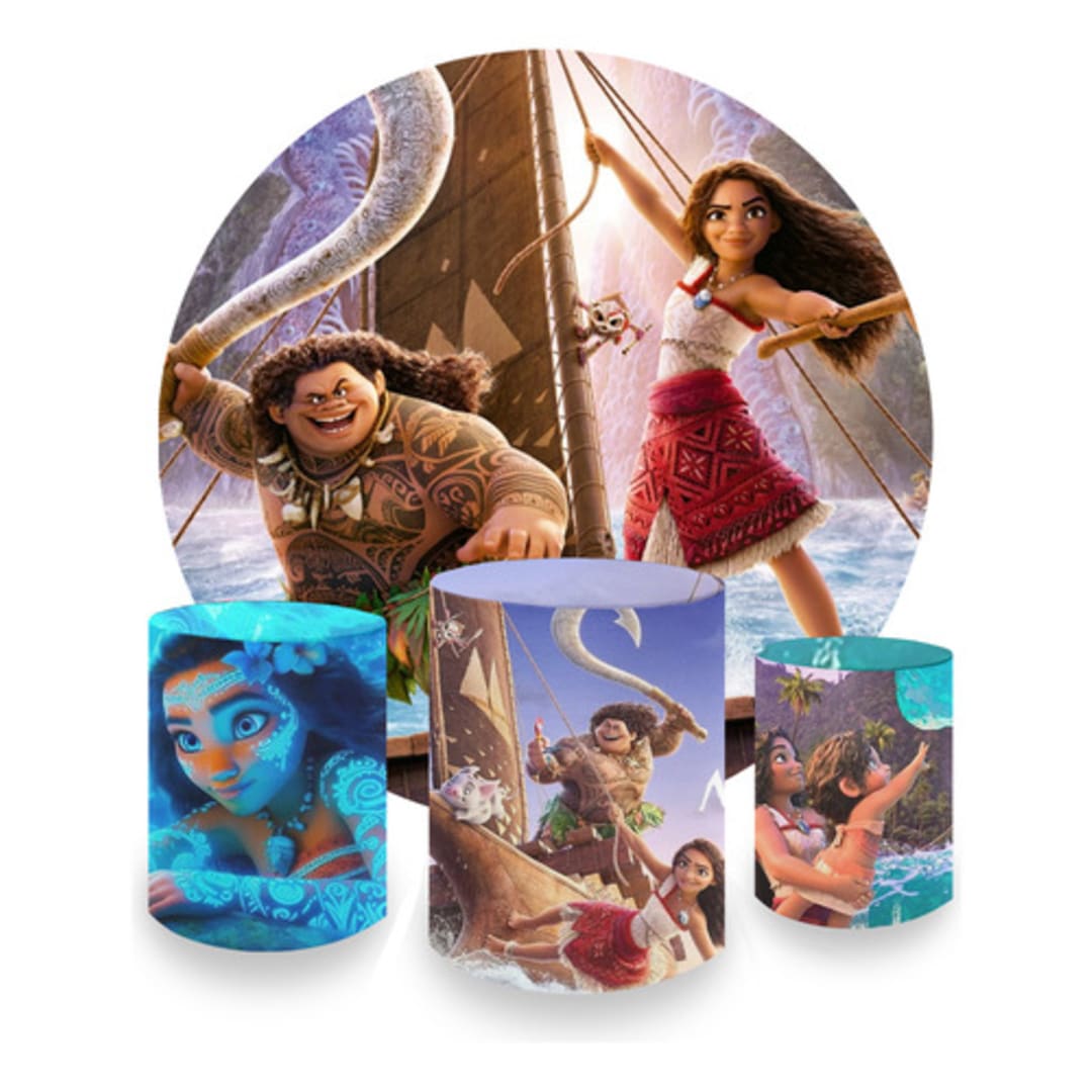 Painel Festa Redondo + Trio De Capa Cilindro Tema Moana 2