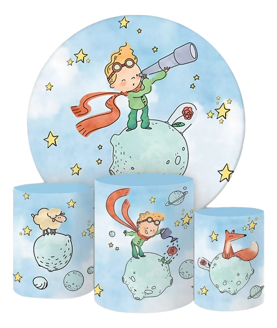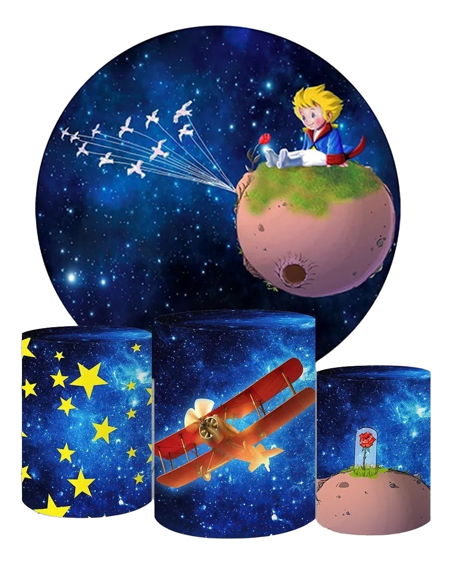 Painel Redondo Trio Cilindros Capas Pequeno Príncipe Ref 001 - Azul