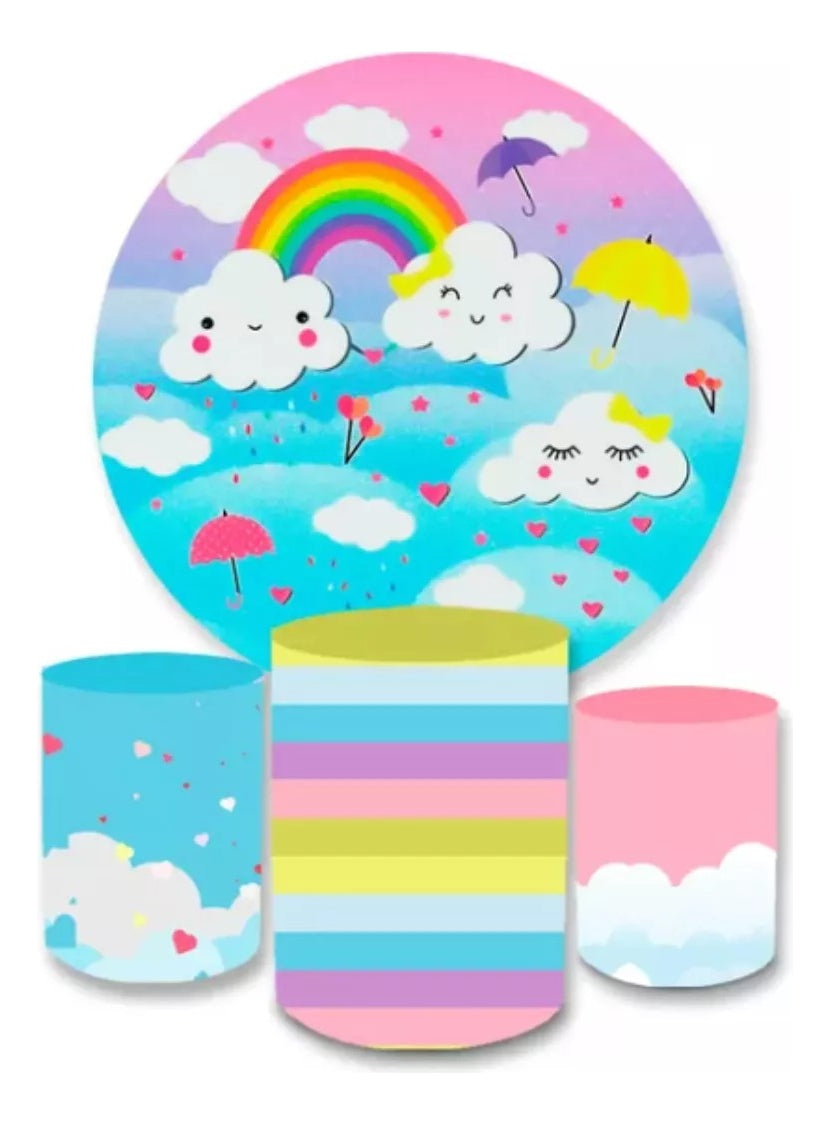Painel Redondo Trio Cilindros Capas Cores Arco-íris Ref 001 - Azul-celeste