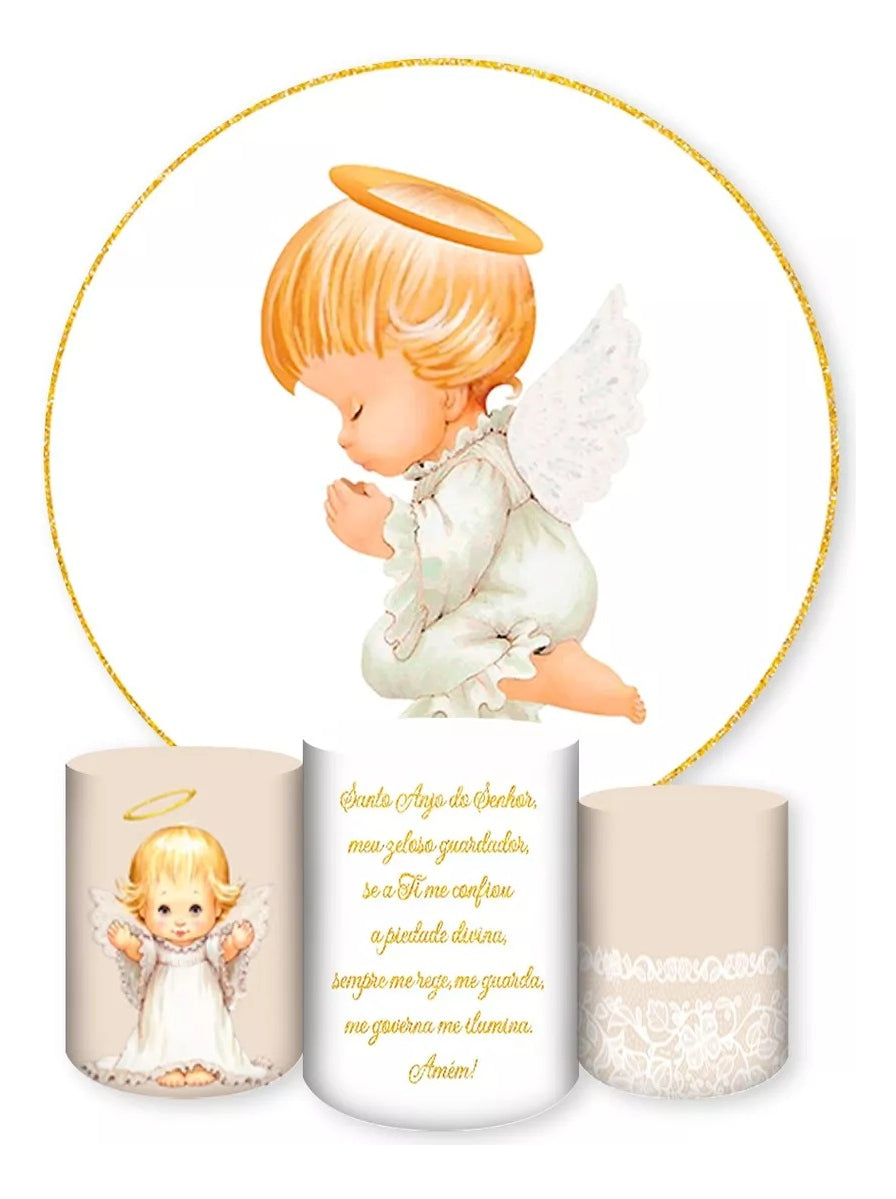 Painel Redondo Trio Cilindros Capas Anjinho Céu - Branco