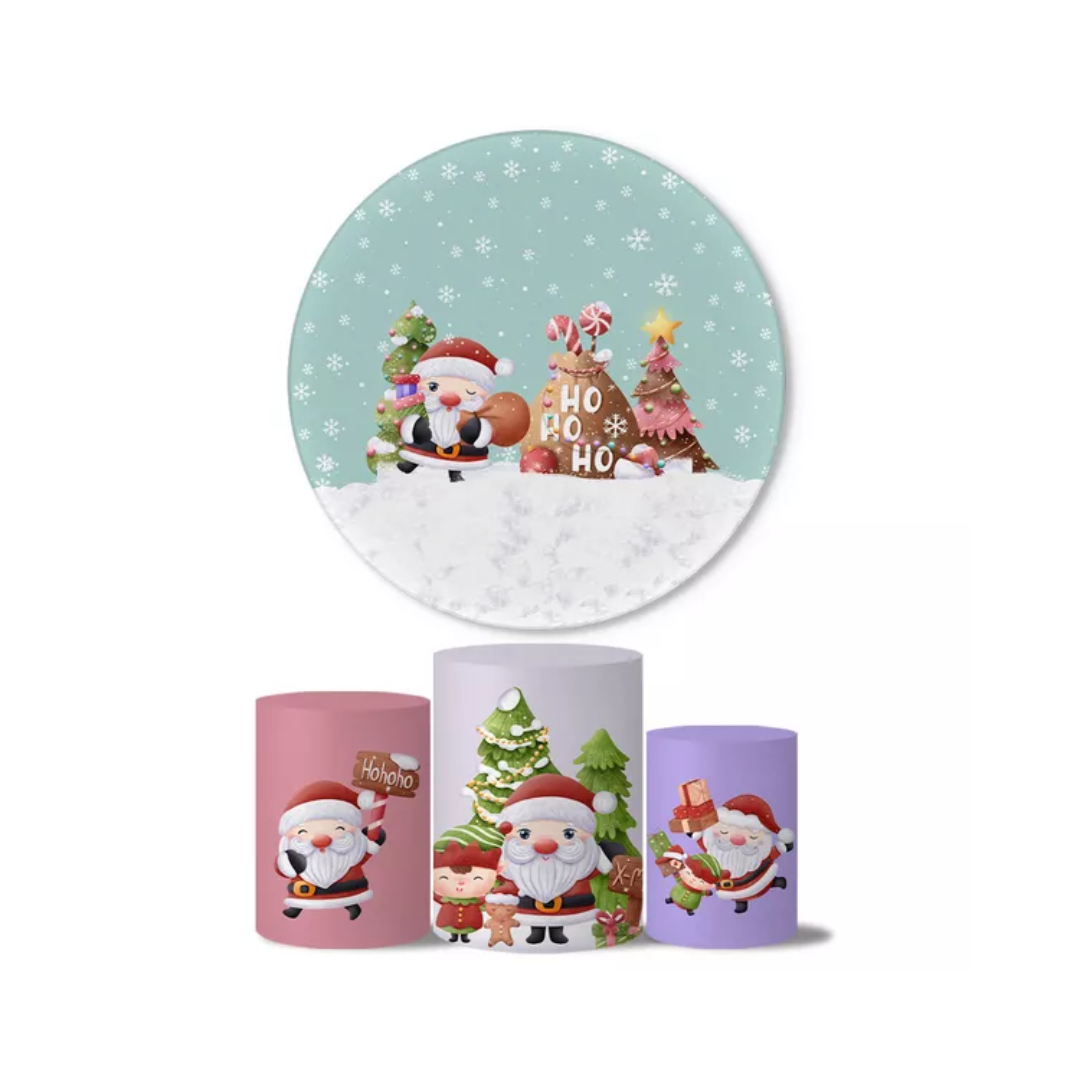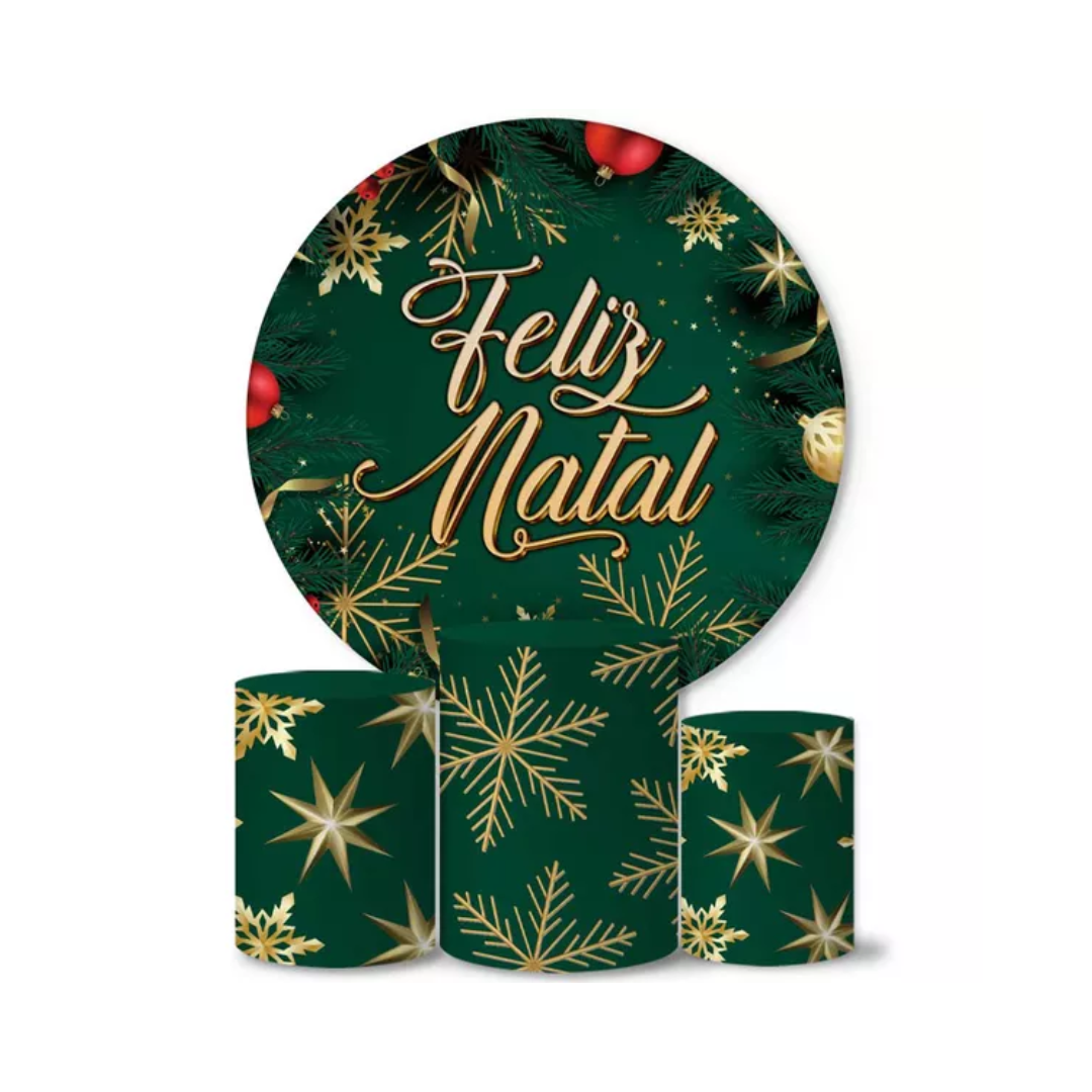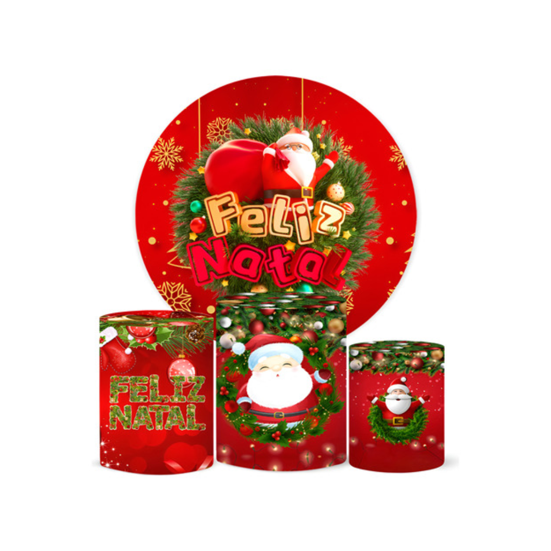 Kit Decoração Natal Painel Redondo + 3 Capas Cilindros
