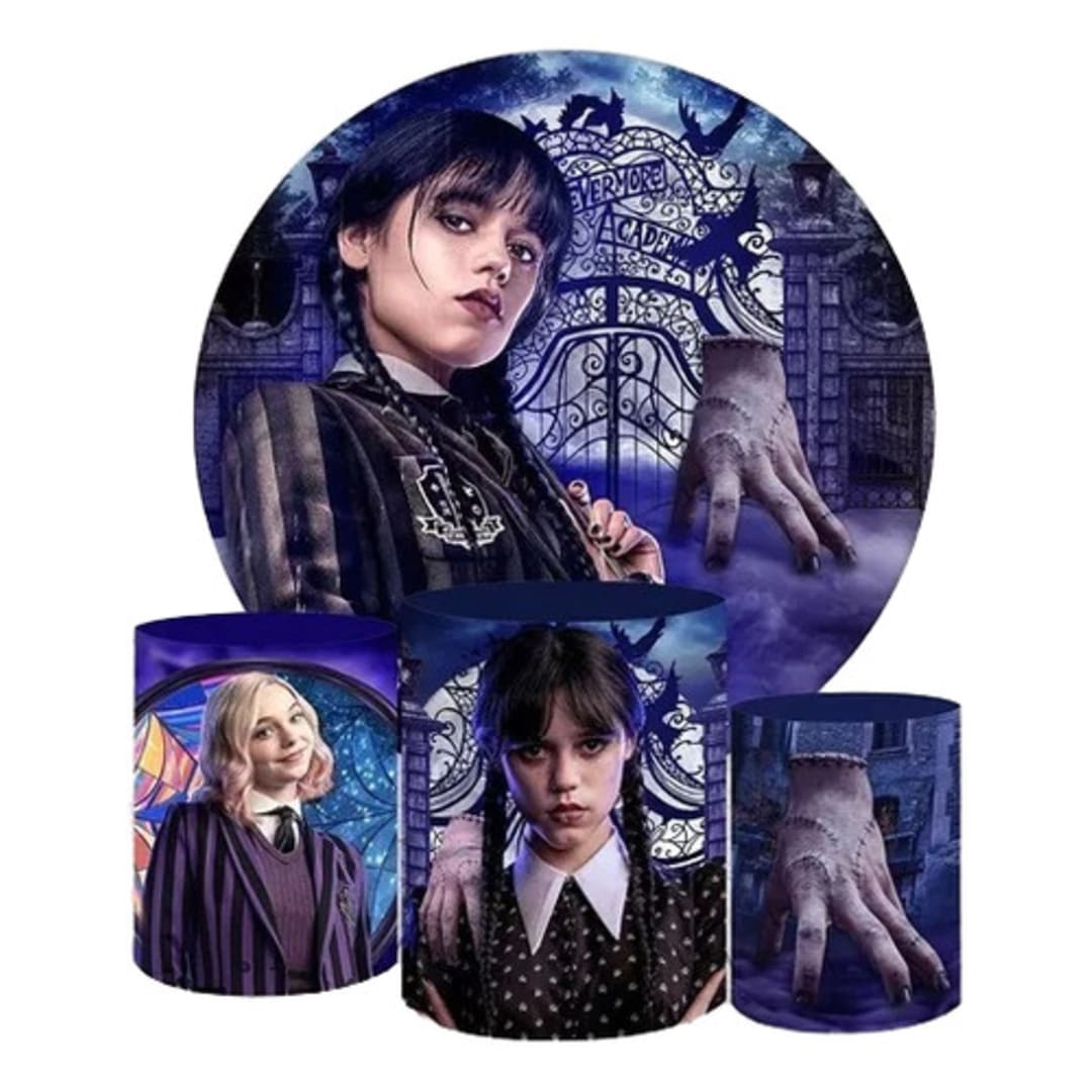 Kit Painel Decorativo E Capas Cilindro Tema Wandinha Tecido5