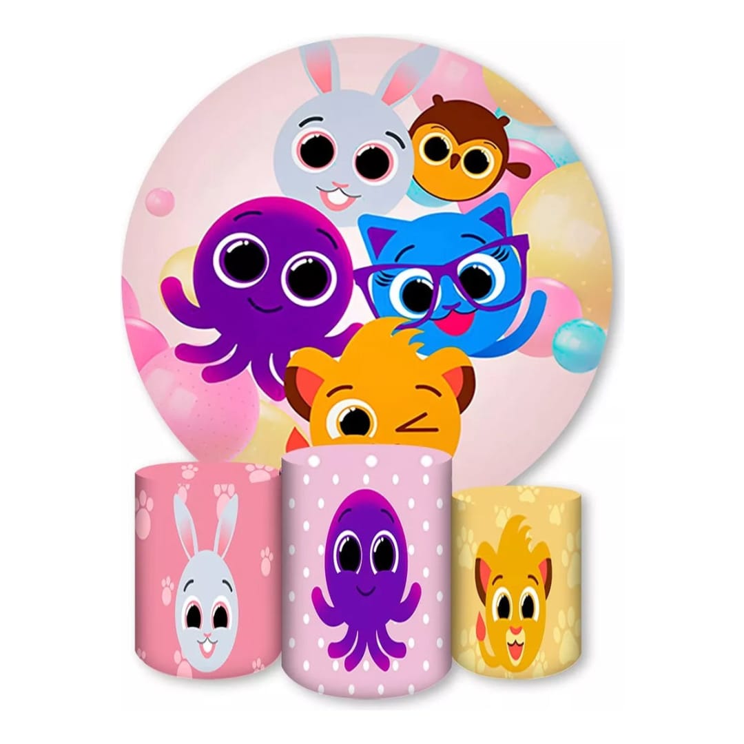 Painel Redondo Trio Cilindros Capas Desenho Bolo Fofo 002 - Rosa é a escolha ideal para transformar qualquer celebração em um cenário inesquecível. Produzido com tecnologia de impressão sublimática digital de última geração, oferece cores vivas, alta definição e acabamento impecável.