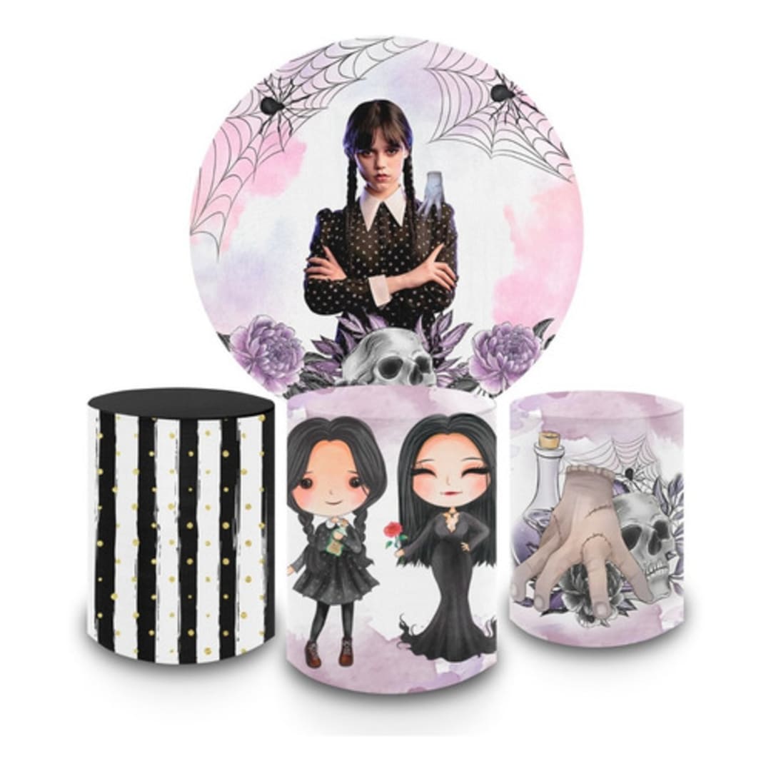 Painel Redondo Trio De Capa Cilindro 4peças Wandinha Cute