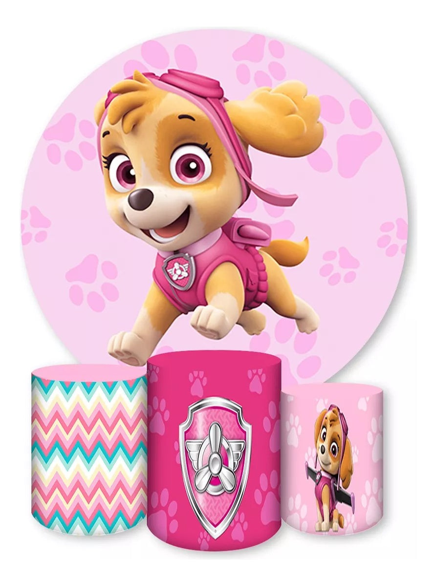 Painel Redondo Trio Cilindros Capas Patrulha Canina Ref 017 - Rosa é a escolha ideal para transformar qualquer celebração em um cenário inesquecível. Produzido com tecnologia de impressão sublimática digital de última geração, oferece cores vivas, alta definição e acabamento impecável.