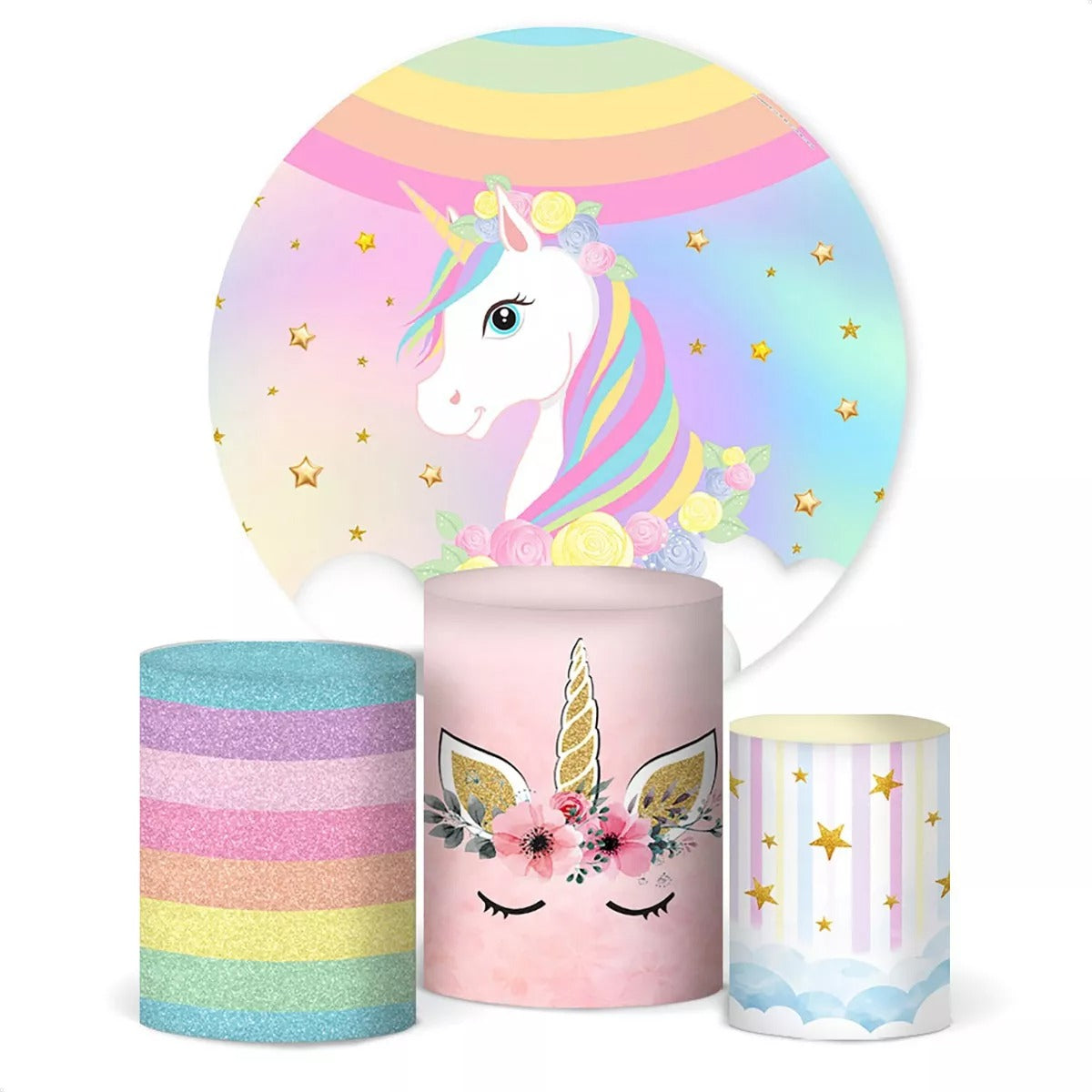 Painel Redondo Trio Cilindros Capas Unicórnio Ref 004 - Rosa é a escolha ideal para transformar qualquer celebração em um cenário inesquecível. Produzido com tecnologia de impressão sublimática digital de última geração, oferece cores vivas, alta definição e acabamento impecável.