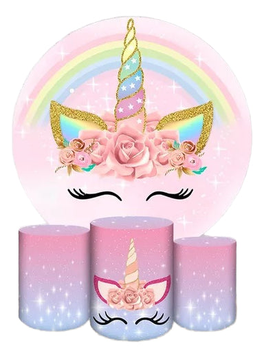 Painel Redondo Trio Cilindros Capas Unicórnio Festa Colorido - Rosa-claro é a escolha ideal para transformar qualquer celebração em um cenário inesquecível. Produzido com tecnologia de impressão sublimática digital de última geração, oferece cores vivas, alta definição e acabamento impecável.