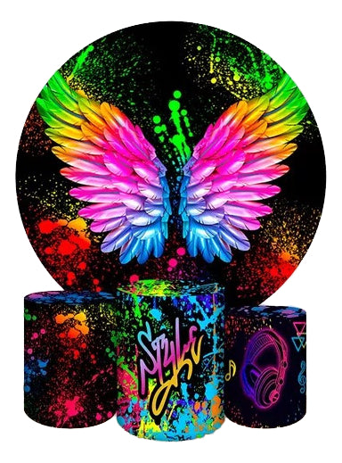 Painel Redondo Trio Cilindros Capas Neon Colorido Ref 003 - Branco é a escolha ideal para transformar qualquer celebração em um cenário inesquecível. Produzido com tecnologia de impressão sublimática digital de última geração, oferece cores vivas, alta definição e acabamento impecável.