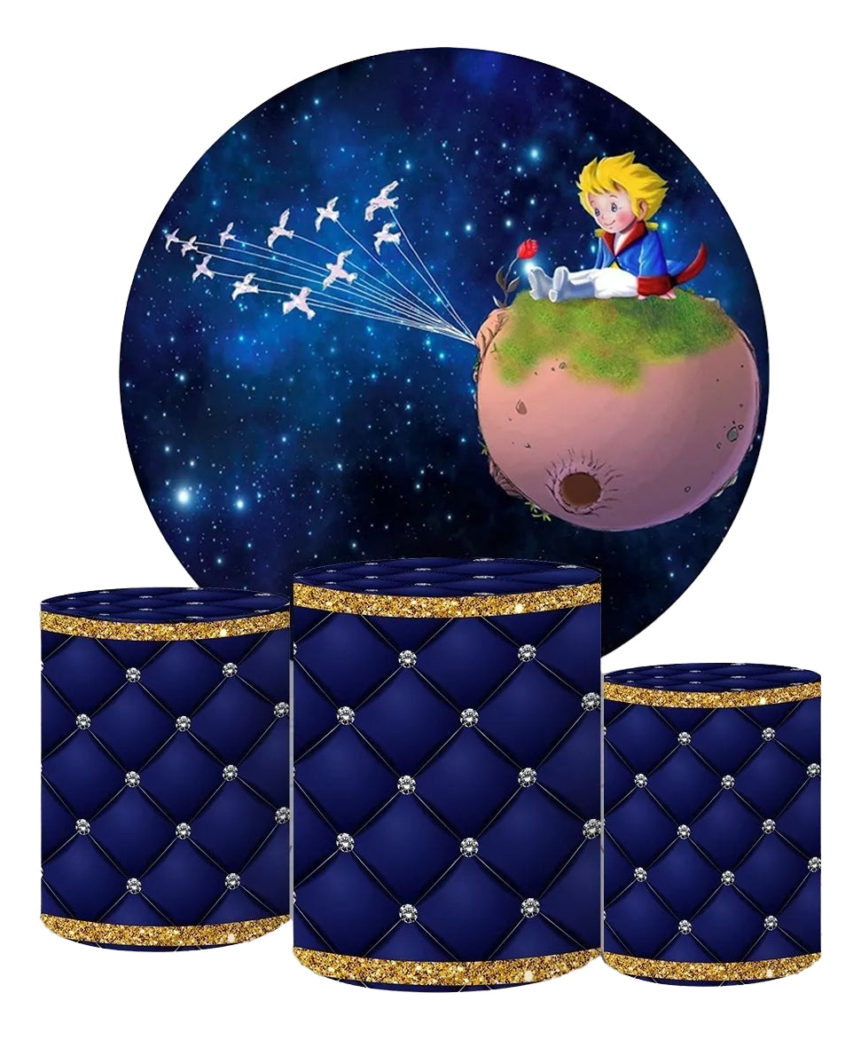 Painel Redondo Trio Cilindros Capas Pequeno Príncipe Ref 002 - Azul é a escolha ideal para transformar qualquer celebração em um cenário inesquecível. Produzido com tecnologia de impressão sublimática digital de última geração, oferece cores vivas, alta definição e acabamento impecável.