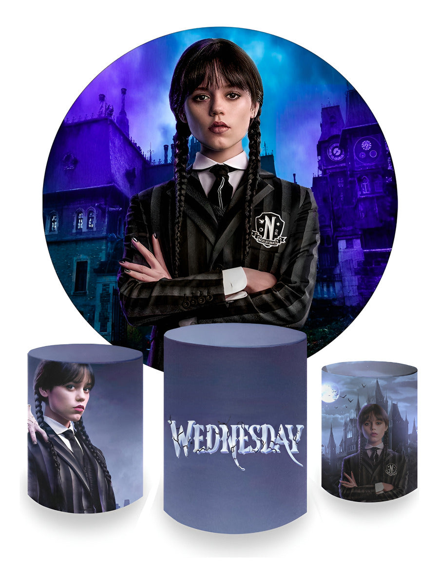 Painel Redondo Trio Cilindros Capas Decoração Wandinha 04 - Wandinha - 04 é a escolha ideal para transformar qualquer celebração em um cenário inesquecível. Produzido com tecnologia de impressão sublimática digital de última geração, oferece cores vivas, alta definição e acabamento impecável.